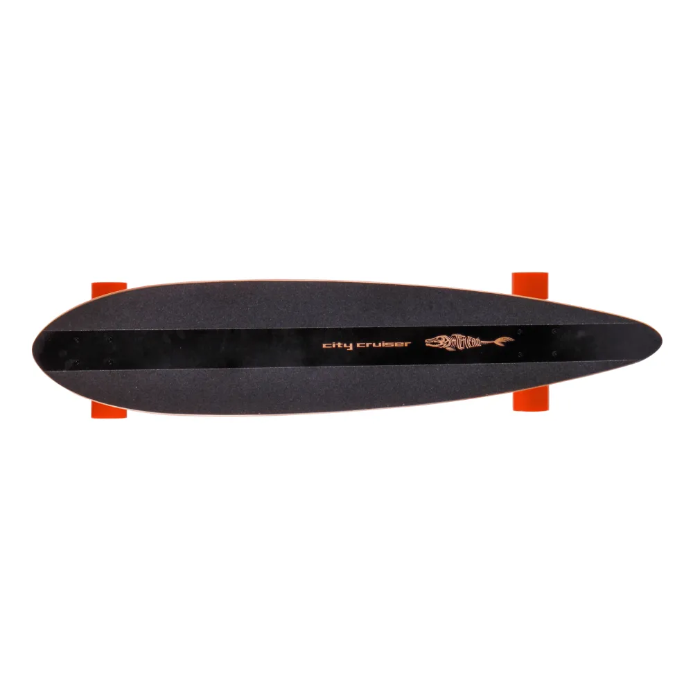 Форма Пинтейл в виде «рыбки» позволяет себя почувствовать серфером в большом городе. Длинная дека очень хорошо поглощает вибрации и неровности на дороге, повышает стабильность. Но все же использование данной модели на крутых спусках возможно только при наличии профессиональных навыков. И не забывайте про специальную защиту.