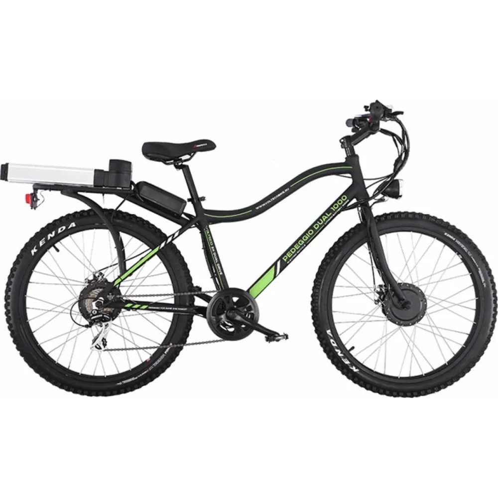 Электровелосипед оснащен дуэтом электромоторов, в сумме дающих 700 Вт, а полный привод обеспечивает максимальный разгон до 50 км/час. Цельная рама предусмотрена для большей надежности, местонахождение и основные показатели модели отображаются на бортовом компьютере. Емкая батарея размещена на багажнике для экономии пространства и минимизации соприкосновения. Полный заряд аккумулятора рассчитан на прохождение 50 км, при этом расстояние может варьироваться в зависимости от типа дорожного покрытия. Широкое сидение позволит райдеру в полной мере насладиться поездками и не ощутить дискомфорт.